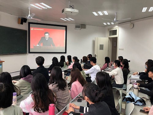 全体研究生新生和其他师生代表齐聚在北校区水教503和507教室,通过网络直播观看“2020年全国科学道德和学风建设宣讲教育报告会暨宣传月启动仪式”,深入学习贯彻习近平新时代中国特色社会主义思想和党的十九届五中全会精神,弘扬科学家精神,加强作风和学风建设,深入推进科学道德和学风建设宣讲教育工作。