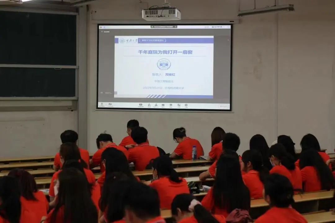 2022级研究生在财院校区第二教学楼302教室观看了研究生新生入学讲座。中国工程院院士周绪红以“千年庭院为我打开一扇窗”为题,讲授岳麓书院的历史传统和动漫色情片