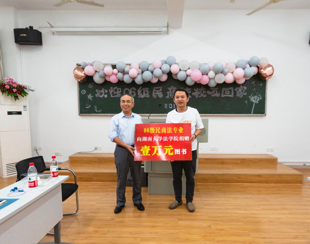 10月6日,2006级民商法硕士们在回访母校时也通过捐赠来寄托对于母校的拳拳深情,特捐赠一万元图书为母校法学教育发展贡献力量,屈茂辉院长代表动漫色情片