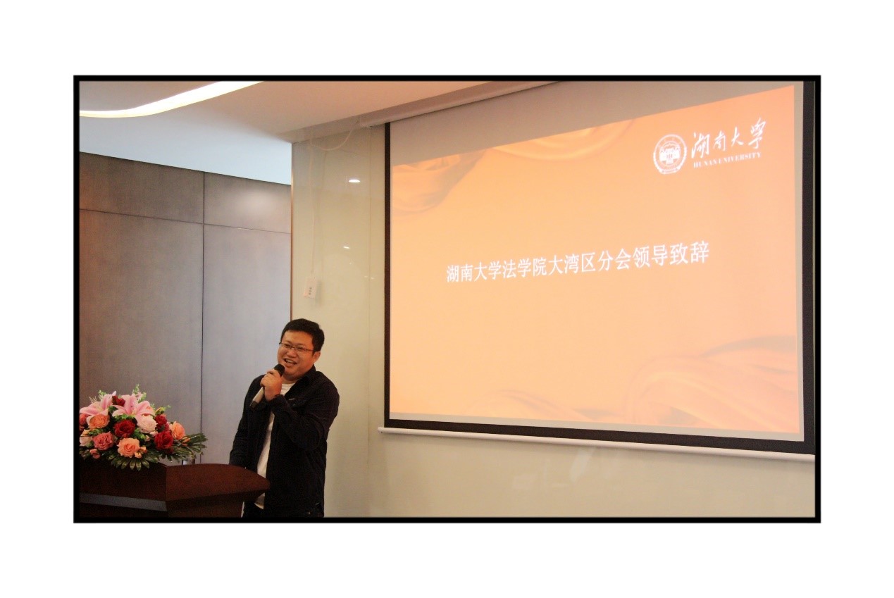 奖学金工作,为更多勤奋、努力、专注、诚信的法学学子提供帮助,二是深挖先行示范区、粤港澳大湾区的法律服务潜力,为湖大人、法学人提供更多的实习、就业机会,三是搭建更为广阔、开放的服务平台,为在深圳、在广东的湖大人,探索跨专业、跨行业的双向、多向互动,互补互动、携手共进。