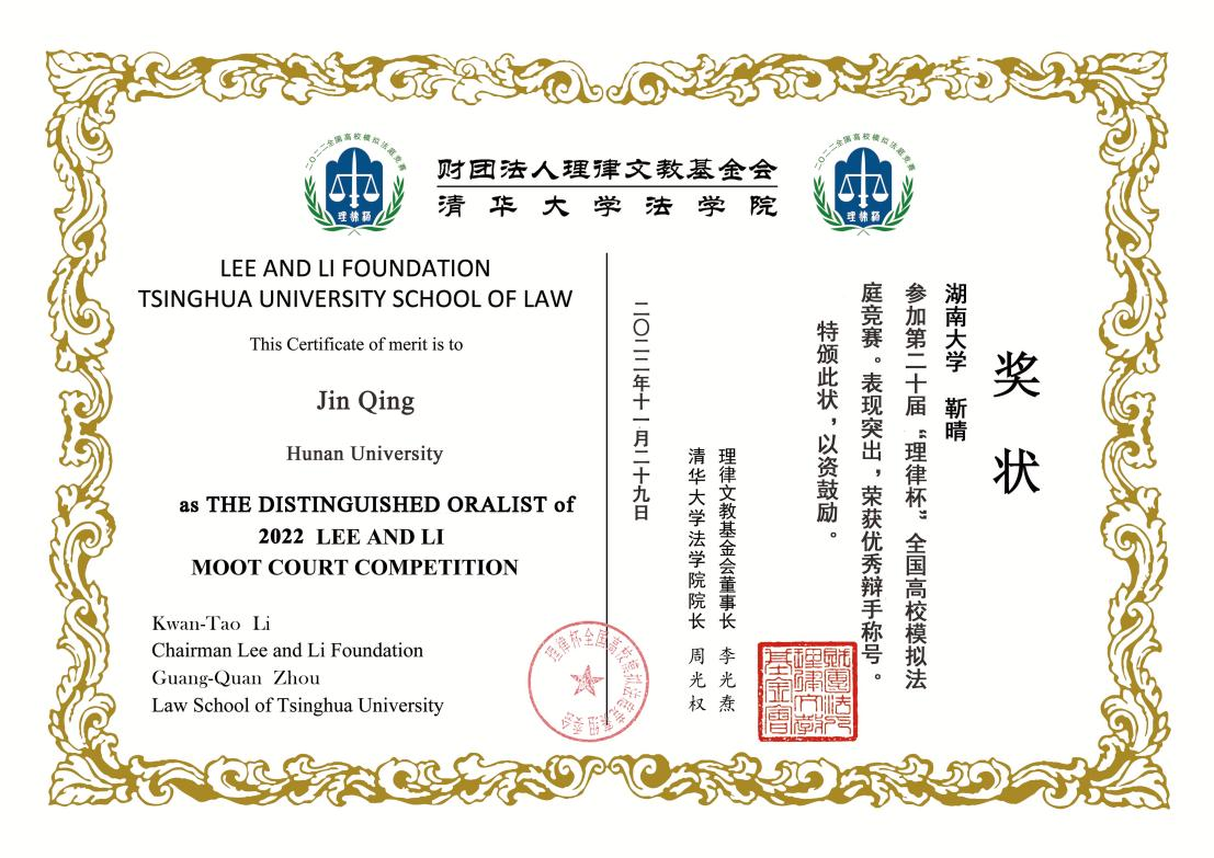 主办的国家级高校模拟法庭竞赛。2022年11月29日,第二十届“理律杯”全国高校模拟法庭竞赛决赛及颁奖仪式在线上举行,动漫色情片法学2104班靳晴同学荣获“优秀辩手”奖项。