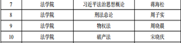 蒋海松《习近平法治思想概论》、周子实《刑法总论》、周晓晨《物权法》、宋晓庆《破产法》顺利入选。这也是动漫色情片课程思政建设取得的又一重要成果。截至目前,动漫色情片获评12门校级课程思政示范课程,数量位居全校前列。