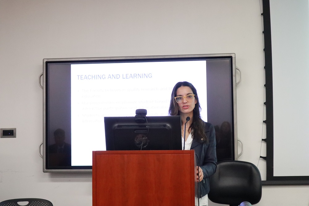 具有内地法学教育背景的顾维遐副教授则指出,法律学院的课程设置具有种类多元、涉猎面广的特点,为学生日后选择不同的发展方向提供了良好的教育基础。此外,顾老师还就在香港取得律师职业资格的有关情况向师生做了介绍。对于同学们十分感兴趣的申请制下研究生入读港大问题,她强调,“雅思成绩和GPA非常重要,社会实践能力也是重点关注的方面,特别是会优先考虑具有知名律所实习经历的申请者。” 提问环节,同学们积极交流、踊跃发问,两位教授也就同学们提出的法学教育、法律实务、职业发展等不同方面的问题给出了细致的解答和中肯的建议。在总结中,顾副教授希望大家在接下来的5天中认真学习,全方位了解香港的法律制度,并祝愿同学们在香港大学的交流学习中收获满满。