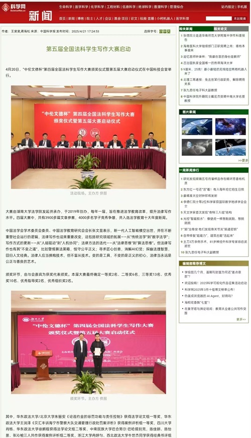 全国诸多媒体聚焦第四届全国法科学生写作大赛颁奖仪式暨第五届大赛启动仪式