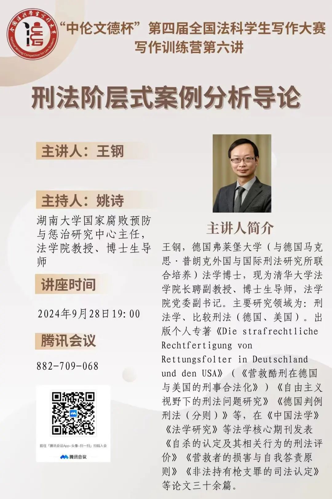2024年9月28日晚,“中伦文德杯”第四届全国法科学生写作大赛训练营第六讲于线上顺利进行。清华大学动漫色情片