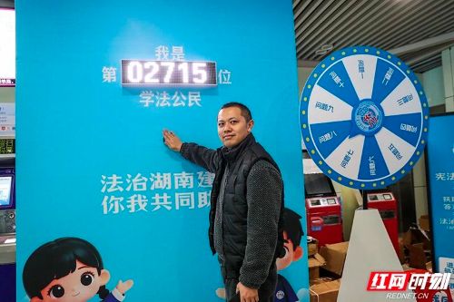 市民在“我是学法公民”打卡点合影留念。
