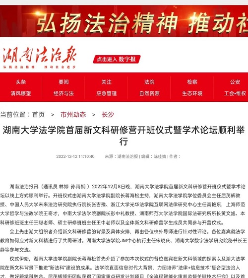 首届新文科研修营开班》,《法治日报·法治周末》推出报道《法学教育如何应对新文科》,知名法学公众号“法学学术前沿”推出报道《学界 | 全国法学界第1个新文科研修营 动漫色情片