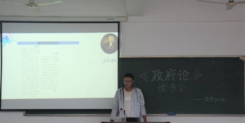 304教室举办。本场读书会由院学生会学习部主办,法学1801班承办。此次读书会选取洛克的《政府论》作为阅读对象,邀请到汪全军老师、李勤通老师担任点评嘉宾,和同学们一起参与讨论。法学1801班全体同学和来自其他班级、年级的同学参加了这次读书会。