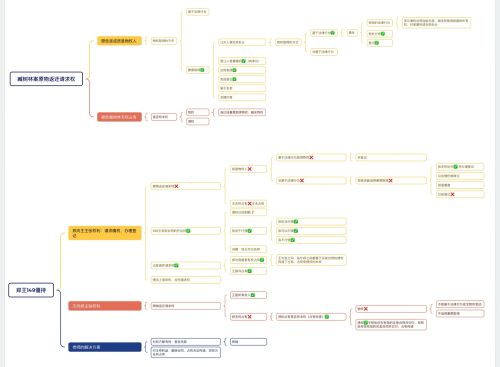 赵奕婷:个人觉得在记物权法的笔记时要精准吃透老师课堂所讲内容,做好民法总论与物权法的衔接。首先可以在笔记中体现老师上课所建构的思维模式与问题分析方式,如请求权基础规范分析方法。其次,建议使用能够同时支持手绘图功能和打字的笔记软件做笔记,因为物权法的学习中经常会有绘制人物关系图的场景,单凭打字很难快速且具象化地完成绘制。此外,个人建议以复习为导向记笔记,既便于复习时背诵,也便于让AI根据笔记出题辅助复习。最后建议在笔记中体现法条的重要性,并结合思维导图对法条进行体系化的整理以及记忆。