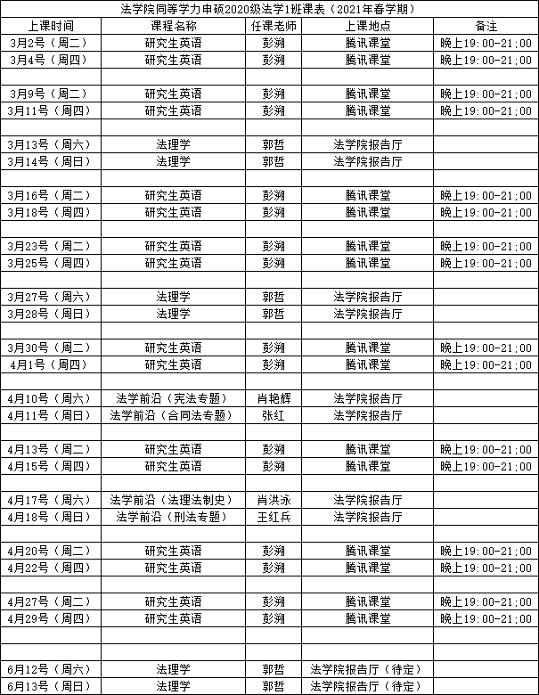 2021年春学期课程安排表(3月1日更新)